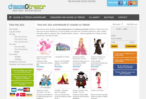 Plus rapide ? Si, si, je connais justement un site TROP TROP GÉNIAL qui vous aidera dans l’organisation de vos anniversaires avec des CHASSES AUX TRÉSORS du tonnerre ! En plus tout est prêt, il n’y a plus qu’à, cliquez juste ici pour vous y rendre.