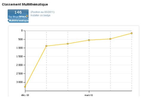 Là aussi j’ai été surpris par mon évolution. Comme indiqué sur le graphique ci-dessus, Papa Blogueur est sorti du fin fond des limbes de cette rubrique pour atteindre le niveau 146 !