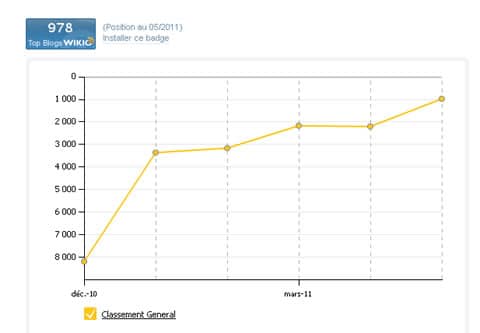 Le classement wikio est principalement basé sur les backlinks provenant d’autres blogs mieux classés dans la catégorie ciblée.