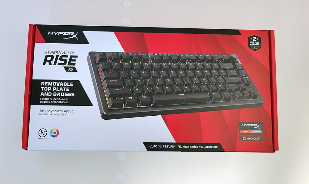 Le clavier est équipé de switches HyperX Red linéaires pré-lubrifiés, réputés pour leur fluidité, réactivité et durée de vie annoncée à 80 millions de frappes.