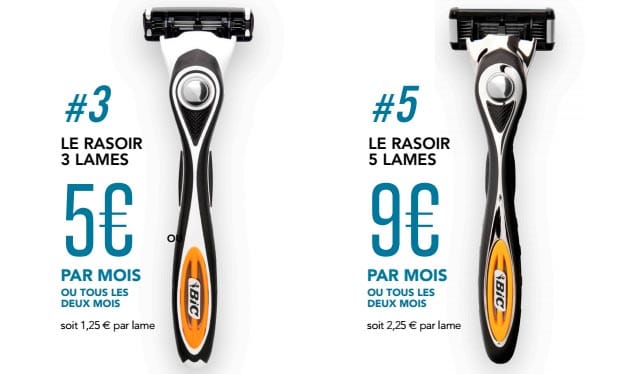 - 3 lames (le basique) 5€/mois ou tous les deux mois