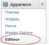 Je préfère nettement l’utilisation d’un éditeur externe (sous Linux j’utilise simplement gedit et pour Windows, soit notepad ou bien notepad++) car l’éditeur interne à WordPress n’est pas des plus pratiques.