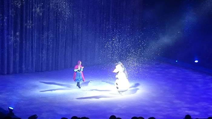 Scène après scène, les héros de Disney se sont côtoyés sur la scène glacée avec en focus, comme déjà déclaré plus haut le show entraînant d’Anna, Elsa et leurs amis. C’est vraiment le clou du spectacle qui clôtura la première partie avant l’entracte.