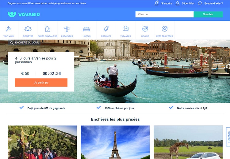 Vavabid est un site d’enchères de produits, de loisirs, de séjours, séances de bien être (…) : parcs d’attractions, visites, rendez-vous saunas, sorties, voyages, …