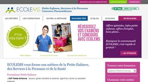Ecolems forme des élèves pour passer un examen ou un concours tout comme un établissement scolaire mais à distance. C’est une école en ligne des métiers de la petite enfance, des services à la personne et de la santé. ECOLEMS suit le référentiel de l’Education Nationale.
