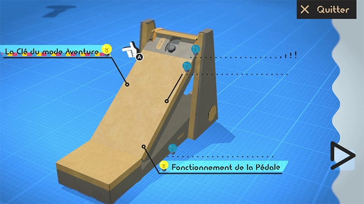 Une fois construit on peut jouer à un petit jeu dédié pour chaque Toy-Con. Ce n’est pas du grand art non plus au contraire de Mario Kart par exemple. Certains sont plus passionnants que d’autres, mais n’oublions pas qu’il y a un public pour chaque Toy-Con quelque soit l’âge de l’utilisateur. La section « découvrir » permet aux plus curieux d’approfondir le système de Toy-Con et si l’envie est là, et les compétences, de construire ses propres Toy-Con maison.