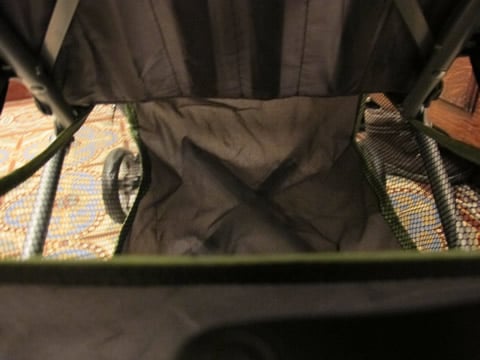 Passons à la suite, en-dessous ! Énorme surprise le panier est grand. Madame Maman a tout de suite vu l’intérêt, avec tous les trucs qu’on peut balader avec la sortie d’un bébé (et se grands frères) avoir un volume de rangement aussi intéressant, c’est indéniablement positif. Un autre truc à savoir, ne pas trop charger les bras de la poussette de sac et autres vêtements, le risque de faire chuter en arrière celle-ci (avec bébé dedans) augmente proportionnellement avec le poids ajouté. D’où l’intérêt de se servir du panier (et de le vider avant repliage de la poussette).