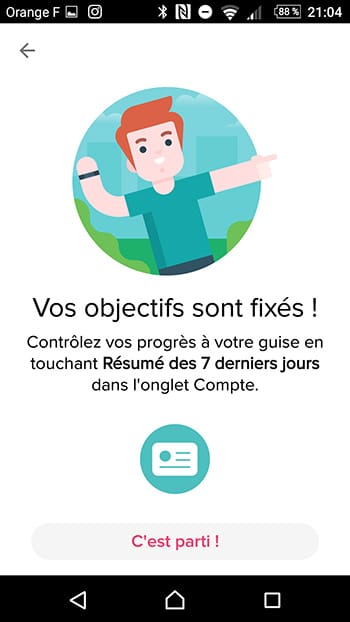 De temps à autres quelques messages s’affichent pour donner des conseils sur notre santé ou nos activités sportives. En effet, la Fitbitt décèle elle-même si l’utilisateur fait du sport en fonction de son rythme cardique, de ses mouvements et sûrement plein d’autres choses captés par la montre.